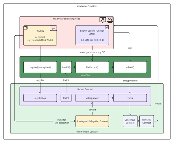 MindV Hubs 是基于 FHE 投票的模块化网络框架,既支持用户直接注册为 Voter,也支持通过 $vFHE 委托参与。其多样化生态系统支持 AI、PoS 和 DePIN 等网络,并为开发者提供标准化接口,满足高度定制化需求。
